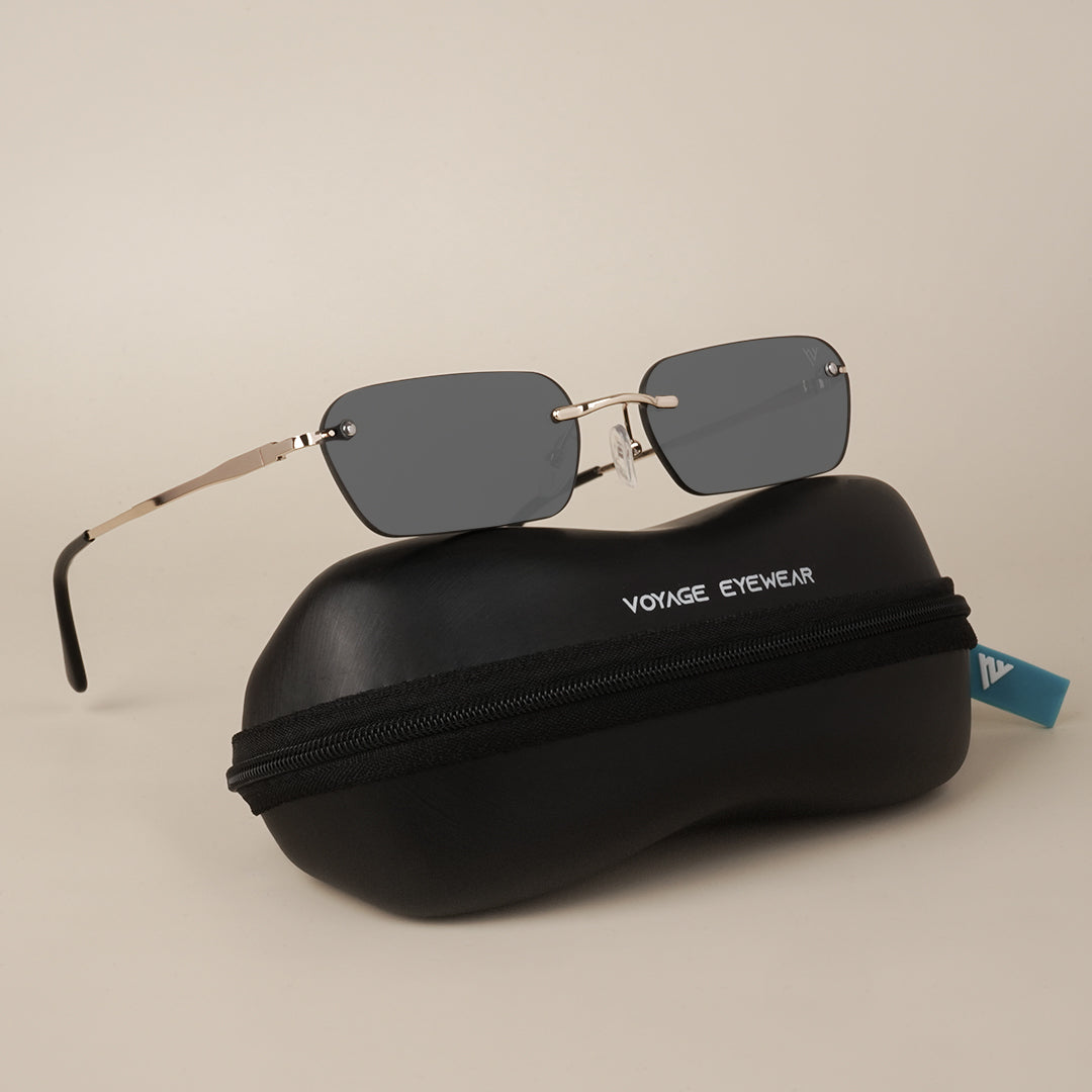Voyage Black Rimless Rectangle Sunglasses - MG3786