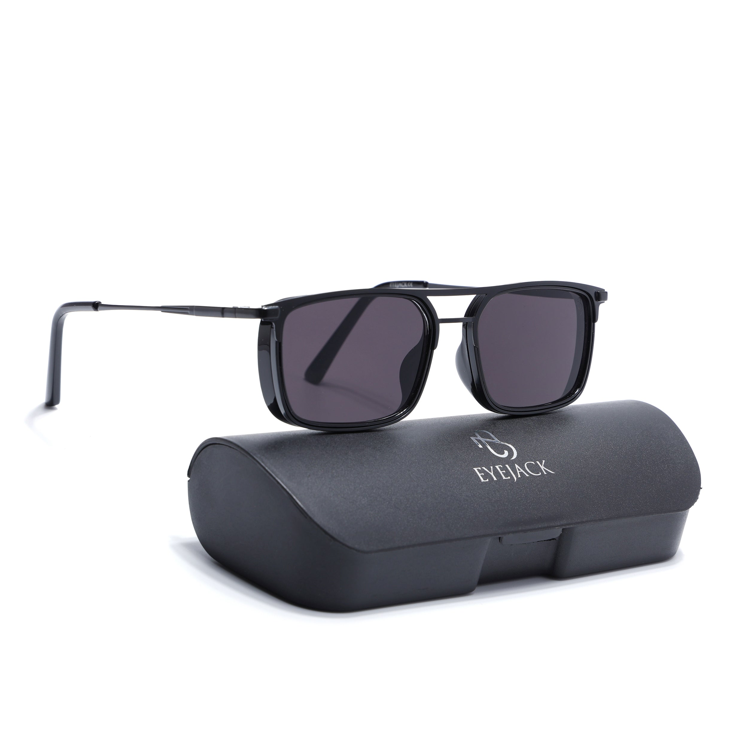 Eyejack Black Rectangle Polarized Sunglasses for Men & Women (80768CL2131)
