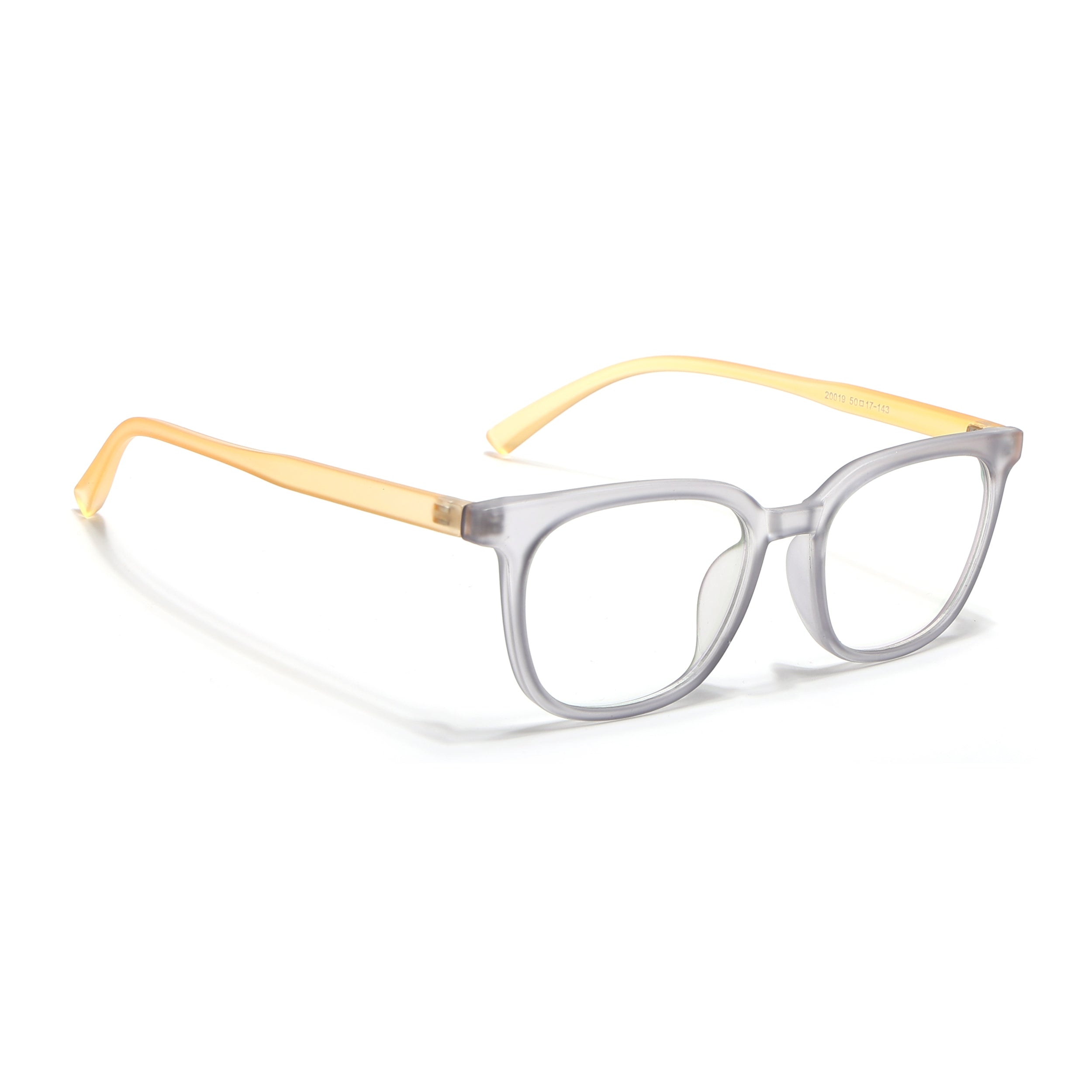 SKU Code: CM20019FCL1851Frame Shape: SquareFrame Colour: GreyIdeal For: Men & WomenLens Colour: ClearFrame Material: TRTemple Material: TRTemple Color: YellowLens Width...