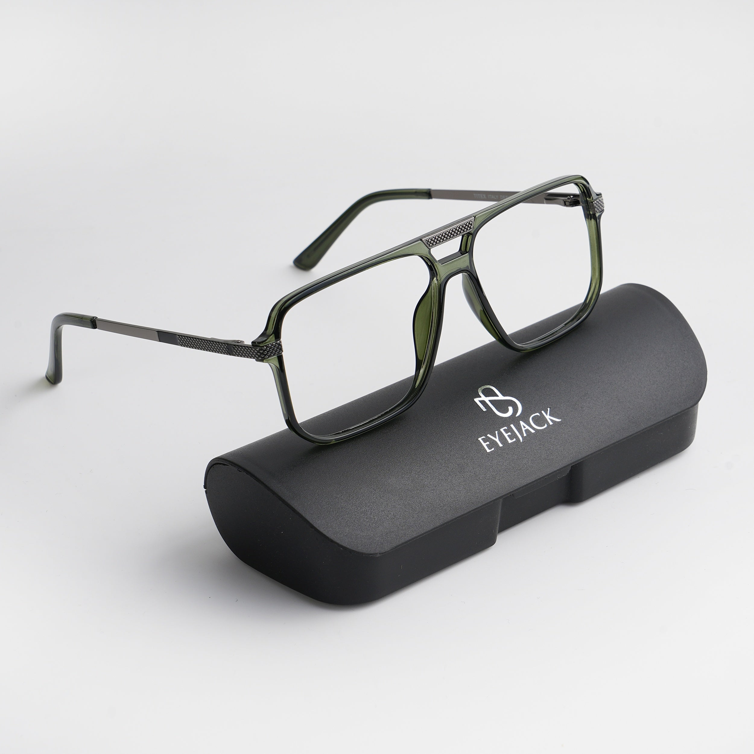 EyeJack Titex Green Wayfarer Eyeglasses for Men & Women (18901CL257-C9)