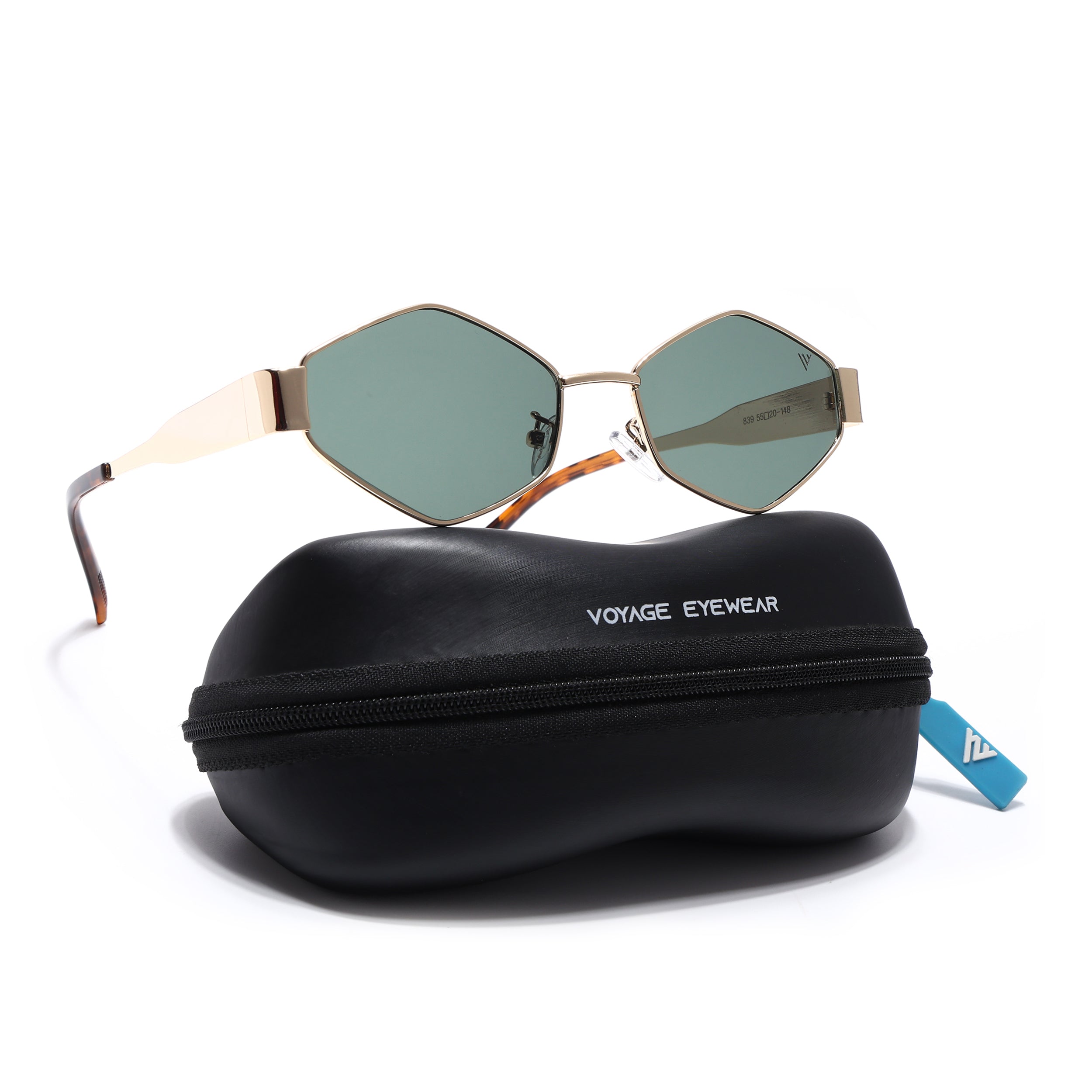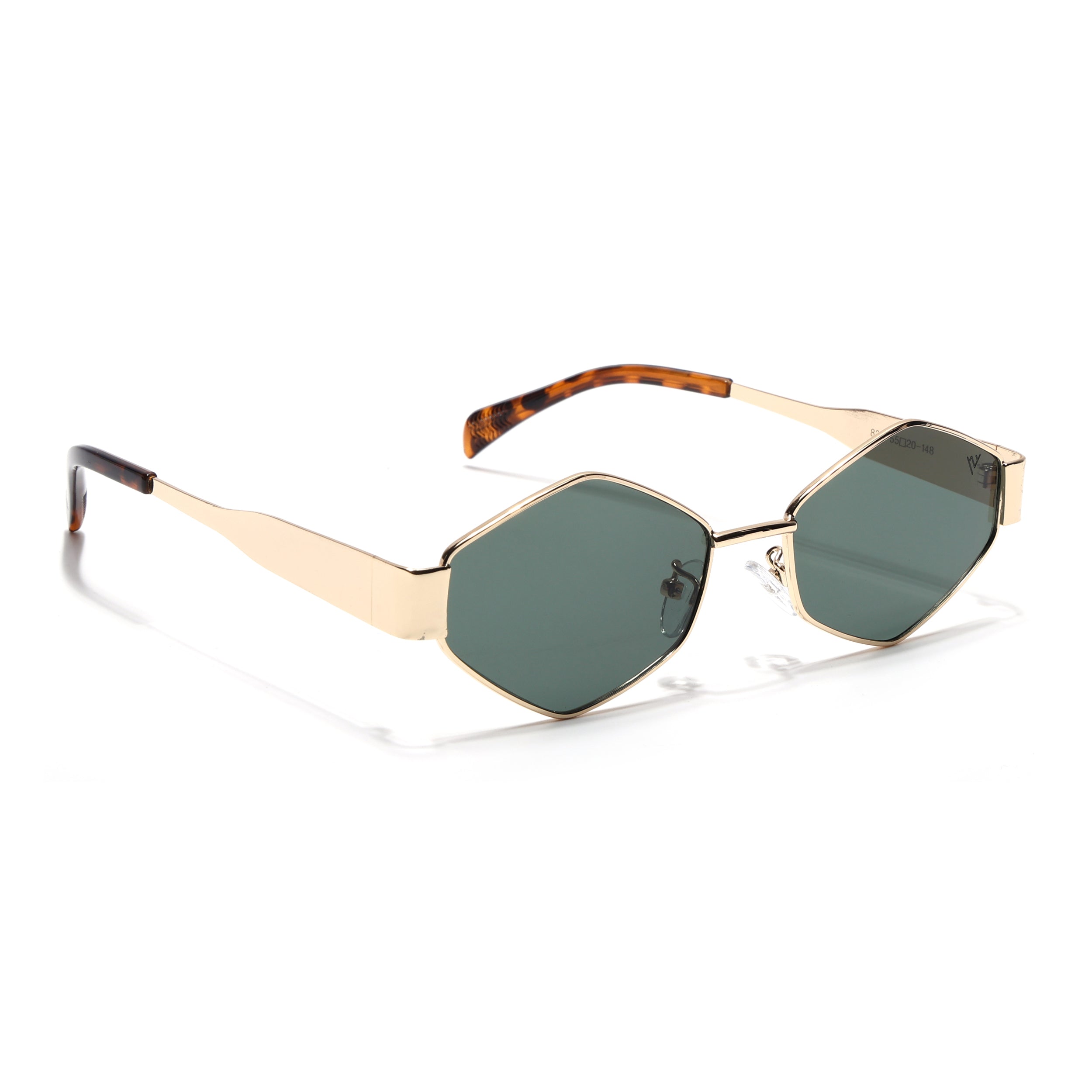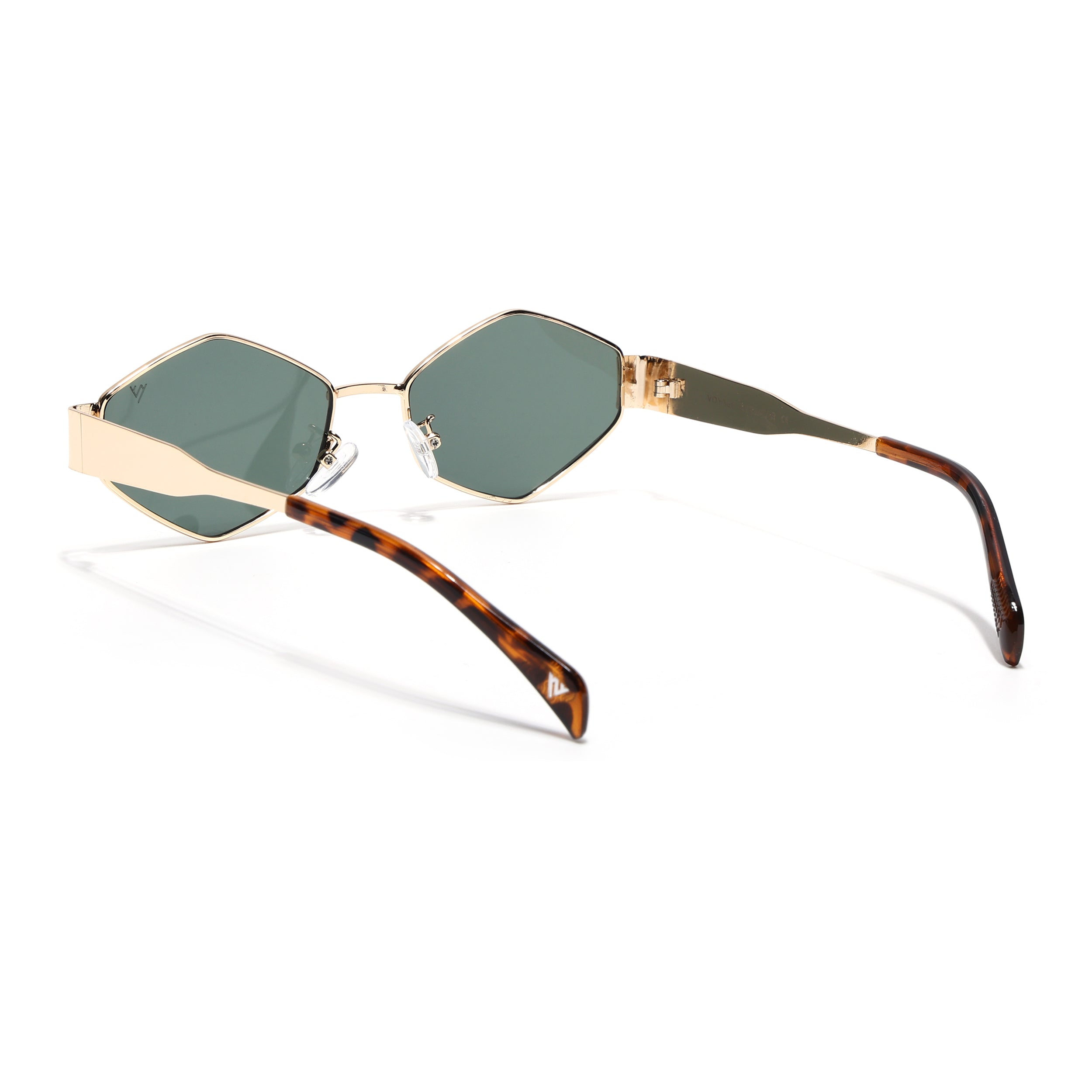 Voyage Hexagon Sunglasses for Men & Women (Green Lens | Golden Frame - MG7392)